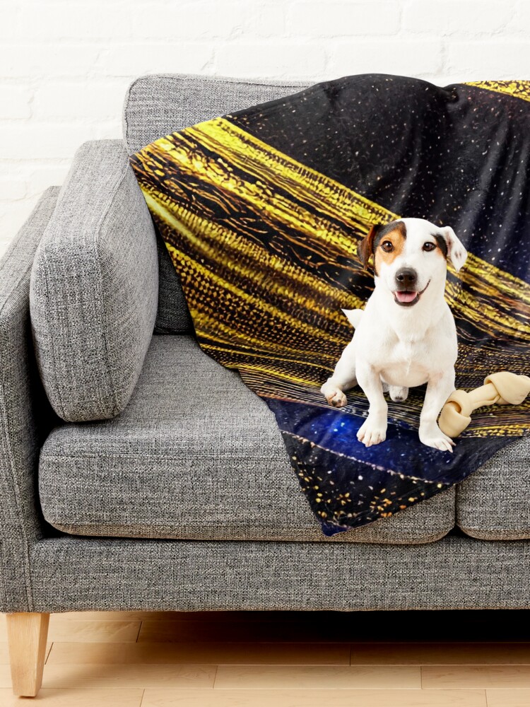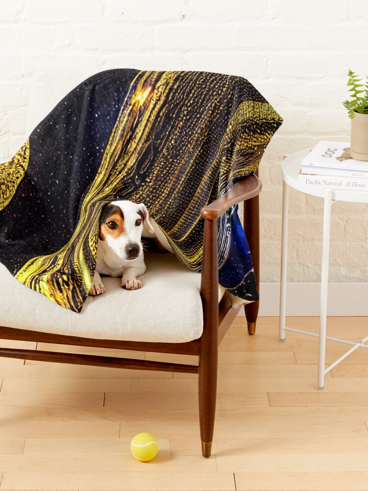 This blanket will make your pet feel cozy and loved with its soft and warm fleece material. It features a stunning liquid gold pattern on a dark blue space background that adds some glamour and charm. It comes in two sizes to fit your pet’s needs: medium and large. Order yours today and treat your pet to this snazzy and comfy blanket!